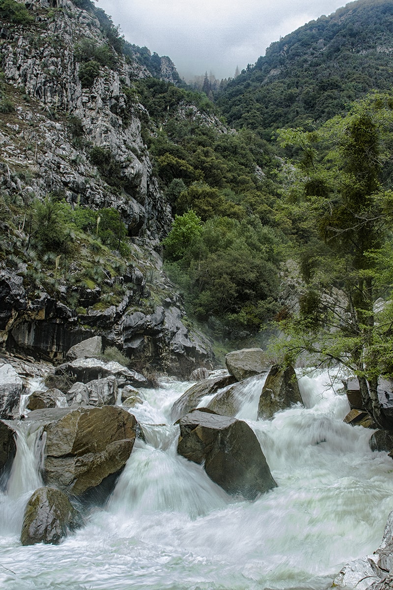 Although the moist morning fog had followed us into the park , nothing could detract from the utter beauty of overlooking the Kaweah River valley. Hearing the roar of the powerful river is the first indication you’ve made it.