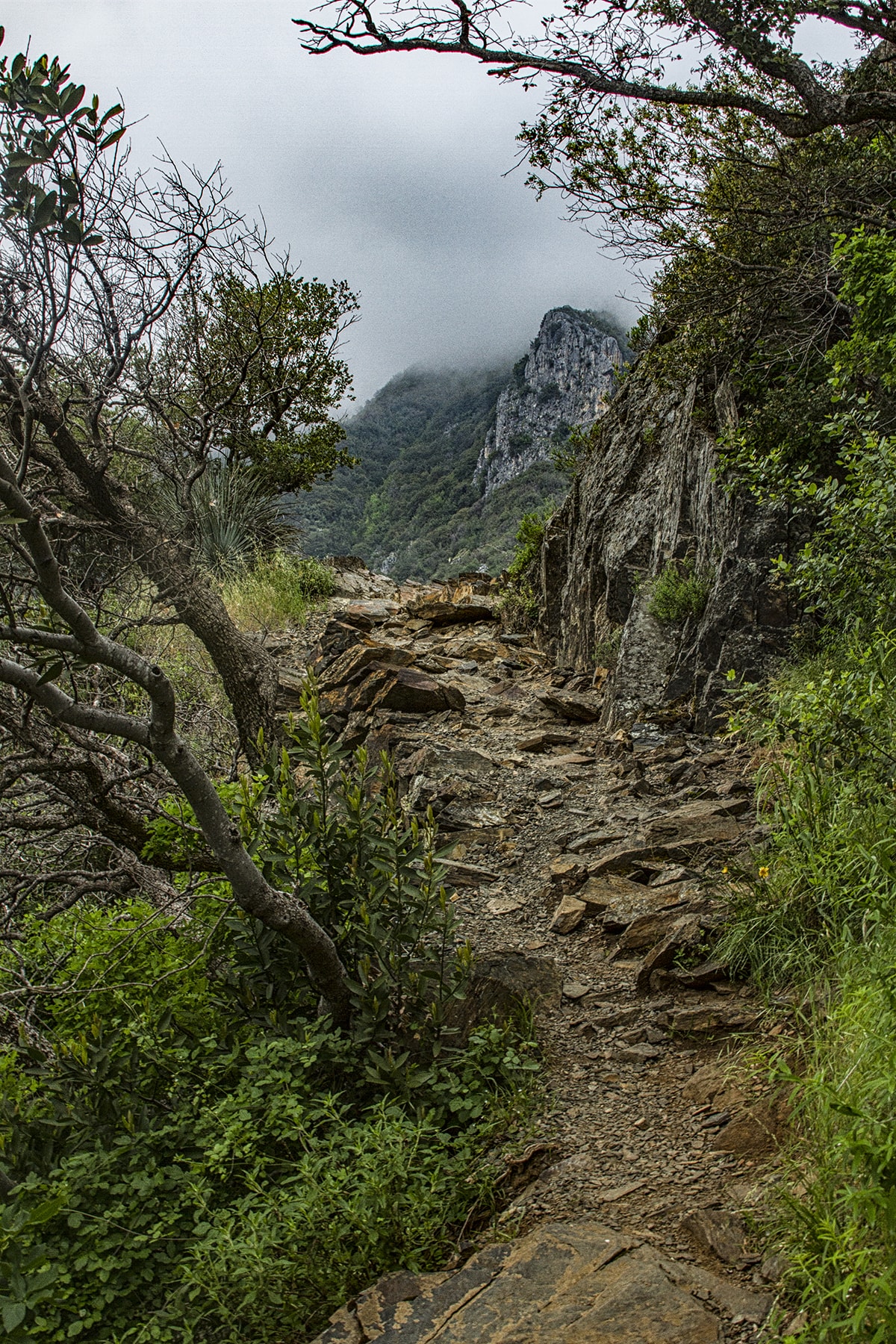 At ten in the morning the second day we set off into what I can only describe as dense Sierra Nevadan jungle. The previous day’s fog had set in once again, this time dissipating midday of the long, inclined hike.